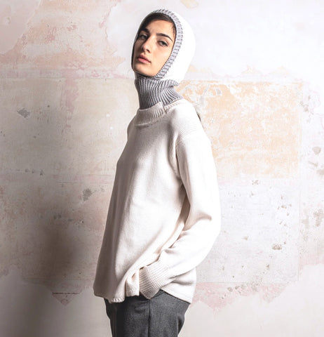 Maglia asimmetrica, in 100% lana di puro merinos.