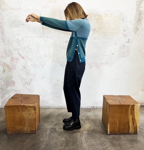Linea leggermente sfiancato ma fluida, collo a coste, spacco laterale con bottoni.