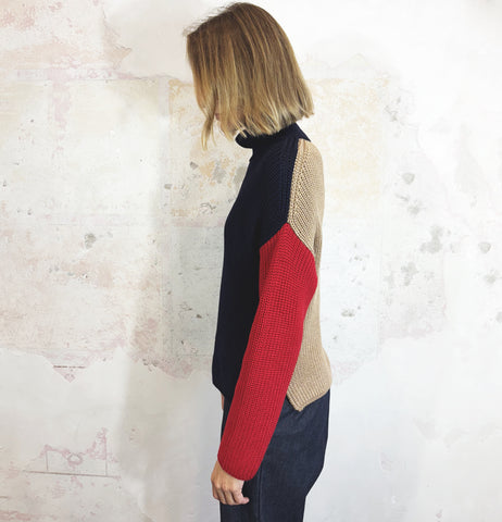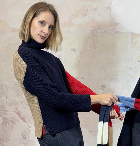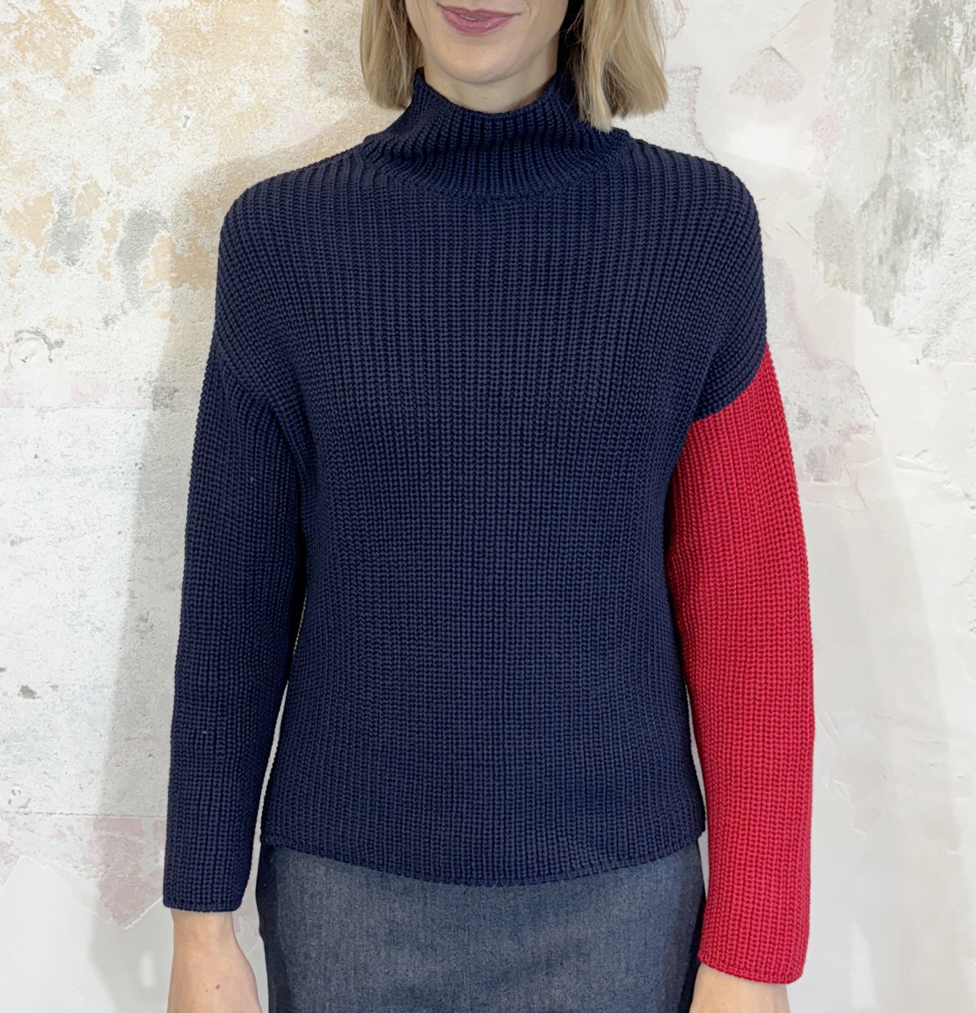 Maglia a collo alto, 100% lana merinos in punto pannocchia.