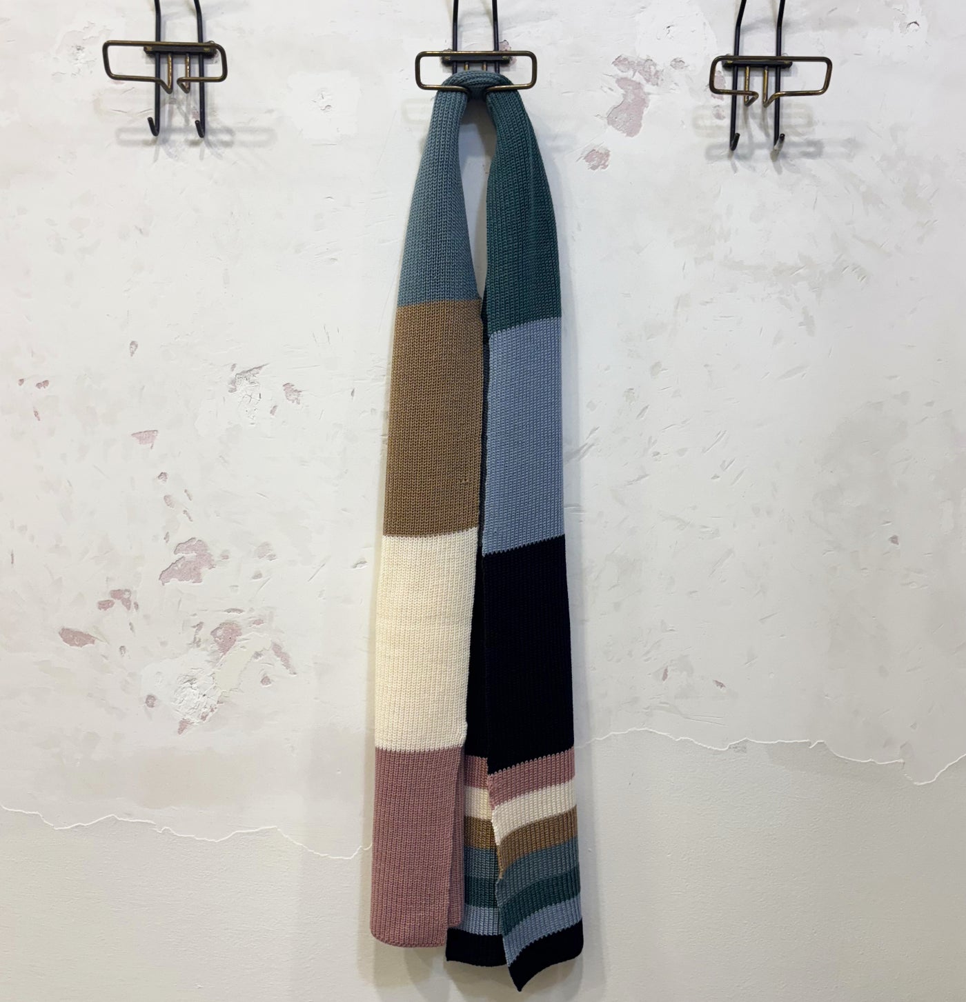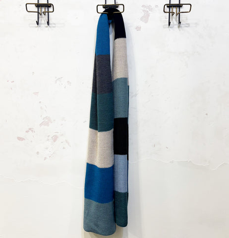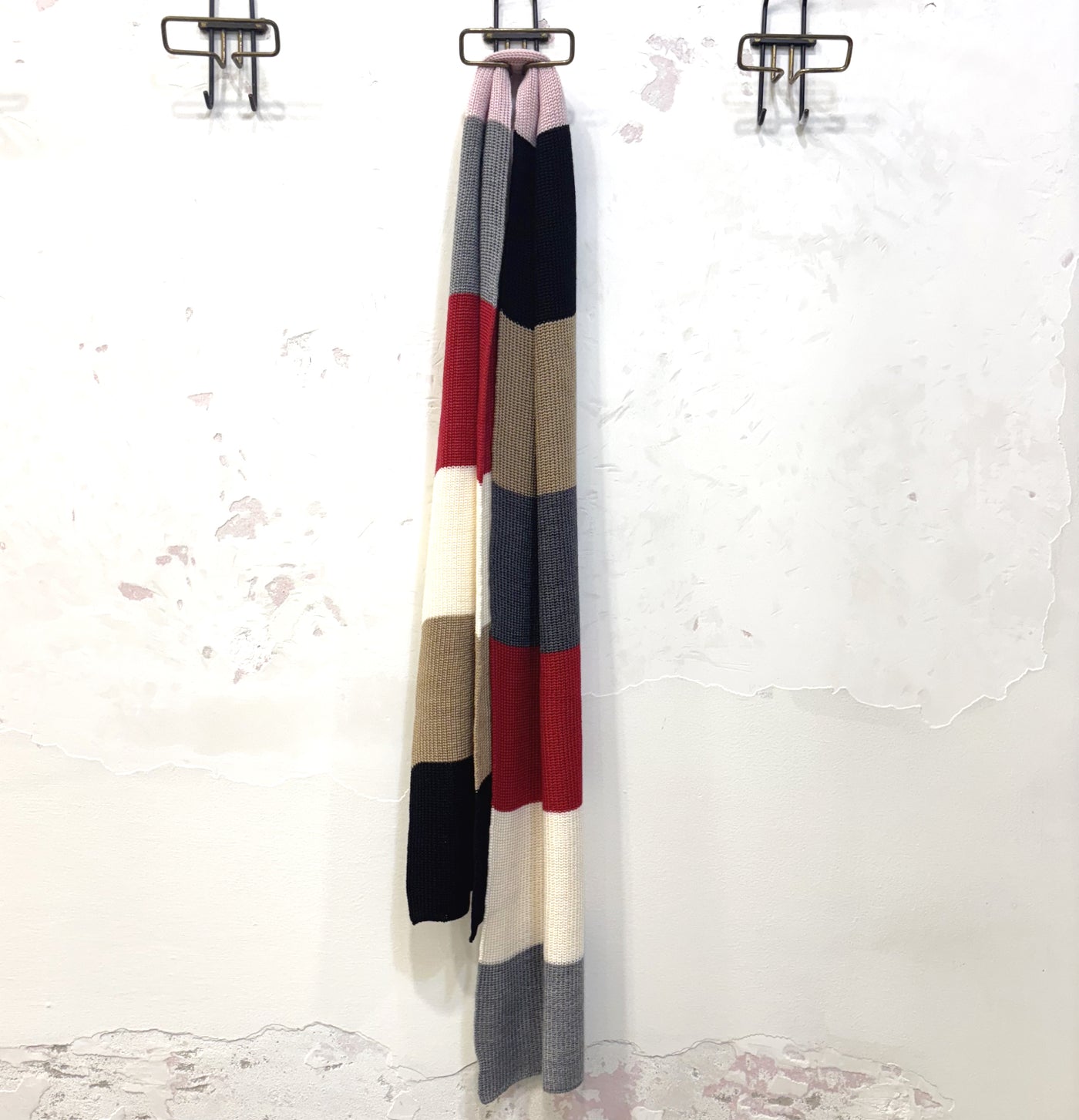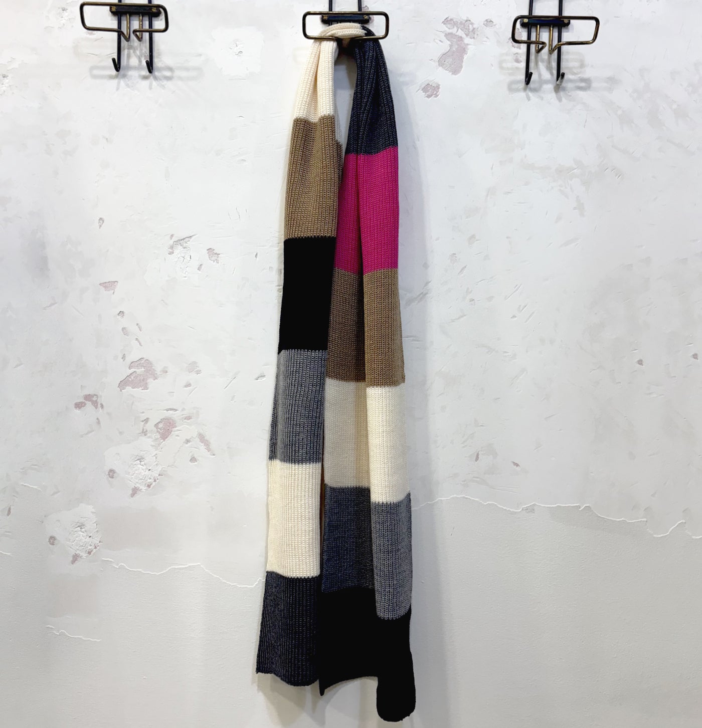 Sciarpa a righe in 100% Lana Merinos,punto pannocchia a 2 fili.